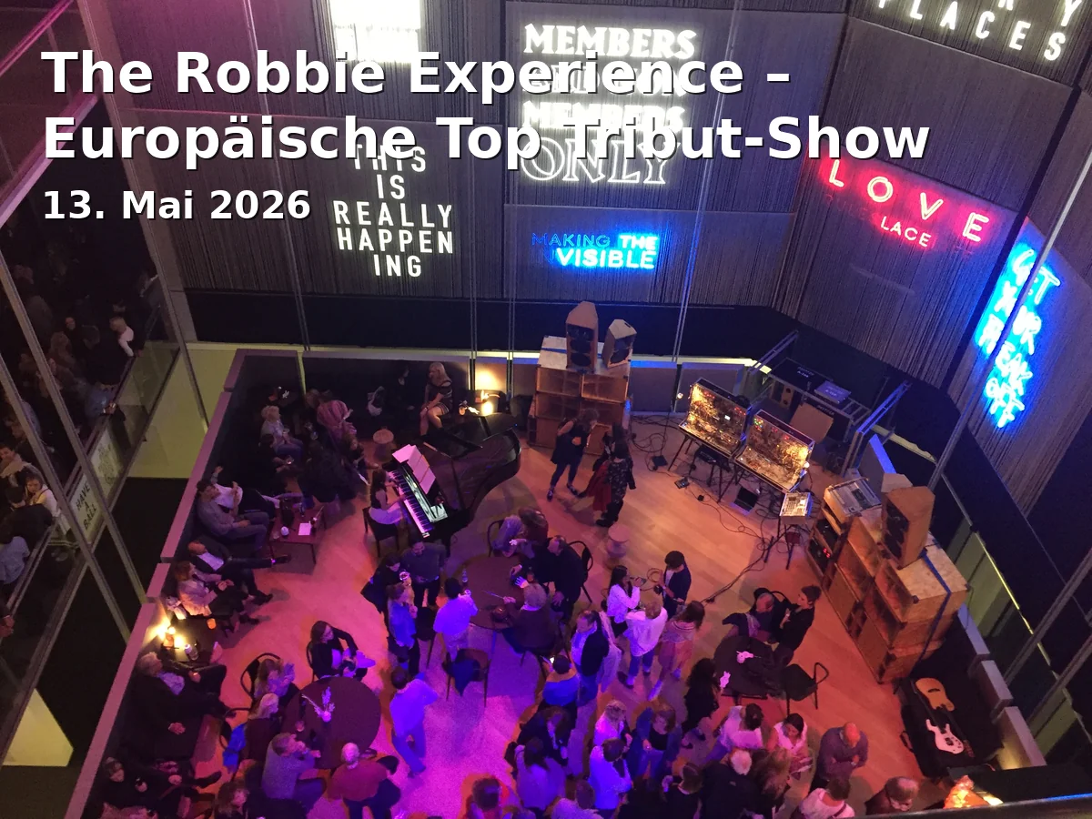 The Robbie Experience ist eine spektakuläre Tribute-Show, die die größten Hits von Robbie Williams zelebriert. Am 13. Mai 2026 verwandelt sich der Arkadenhof des Thon Dittmer Palais in Regensburg in eine Bühne voller Energie und Leidenschaft.